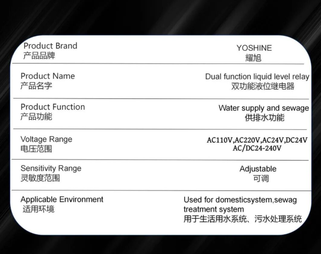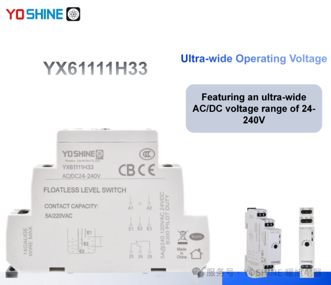El relé de nivel de líquido YX61111220 funciona normalmente dentro de una amplia gama de fluctuaciones de voltaje, y el voltaje de trabajo ultra amplio también amplía el alcance de aplicación de este relé.