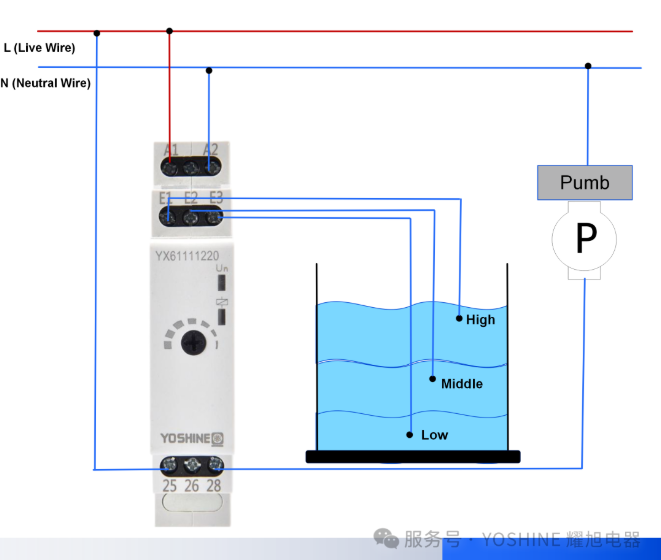 -Sistema de riego agrícola: En el riego de tierras agrícolas, el relé de nivel de drenaje y suministro de agua se puede utilizar para controlar el nivel de agua de la piscina de riego. Cuando el nivel del agua de la piscina es inferior al valor establecido, el equipo de suministro de agua se inicia automáticamente para reponer agua y garantizar que haya suficiente fuente de agua para el riego; cuando el nivel del agua es demasiado alto, el dispositivo de drenaje se activa para evitar el desperdicio de recursos hídricos y realizar una asignación razonable del agua de riego.