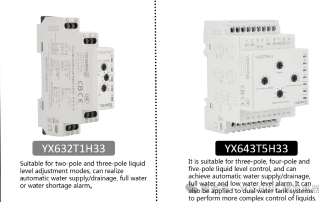 YX632T1H33 y YX643T5H33 son dos relés de nivel de líquido de diez funciones. ¿Cómo elegimos el que más nos conviene?